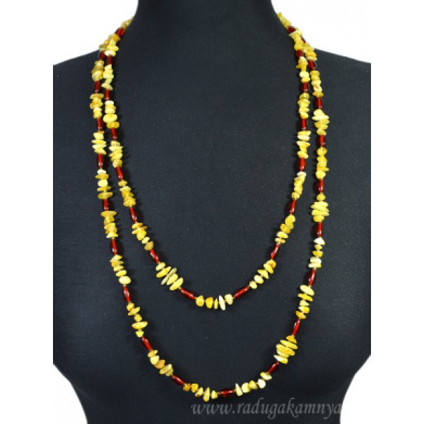 Бусы из янтаря крошка, овал молочный, коньячный, 150см