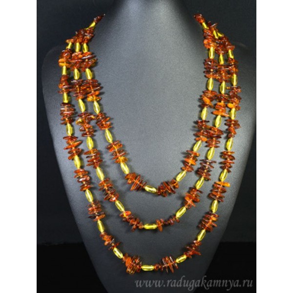 Бусы из янтаря крошка, овал св.коньячный, лимонный, 200см