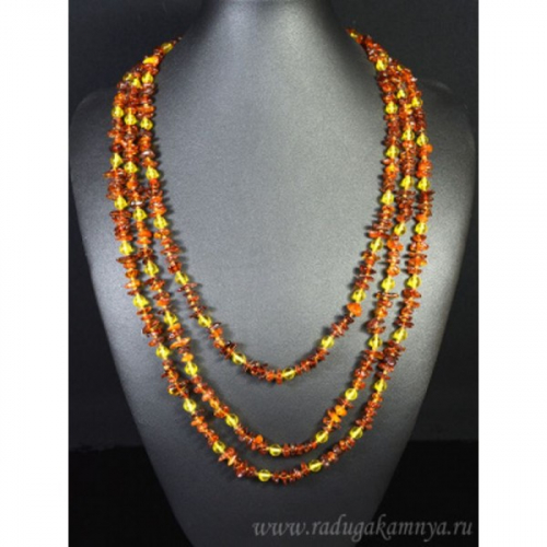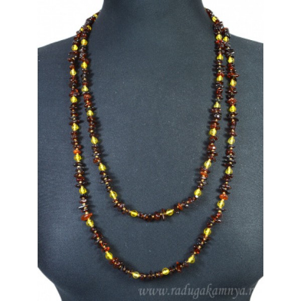 Бусы из янтаря крошка с шариком коньячный, лимонный, 150см