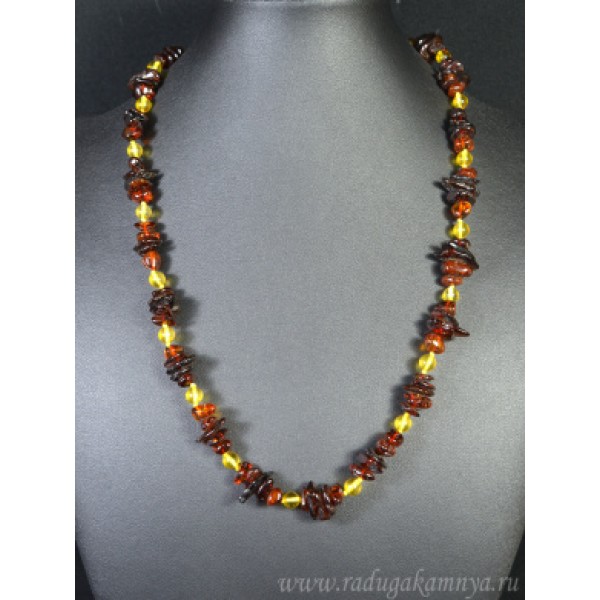 Бусы из янтаря крошка с шариком коньячный, лимонный, 54см