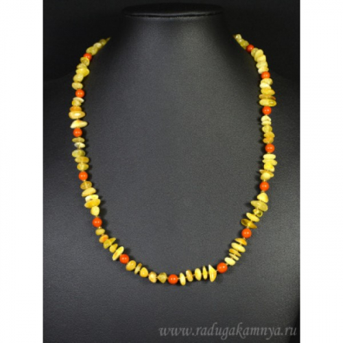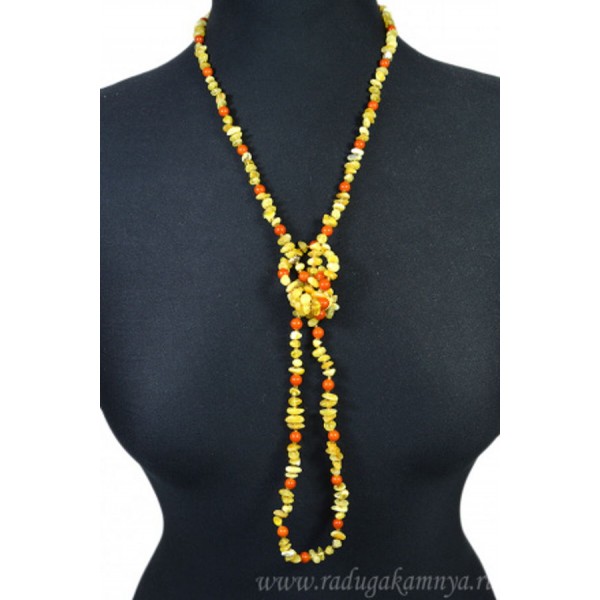 Бусы из янтаря крошка с шариком молочный, карамельный, 112см