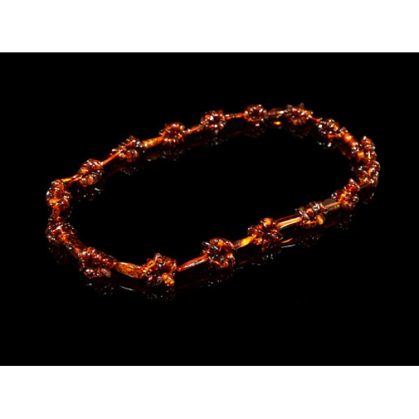 Бусы из янтаря, крошка тройная с галтовкой коньячный, 52см