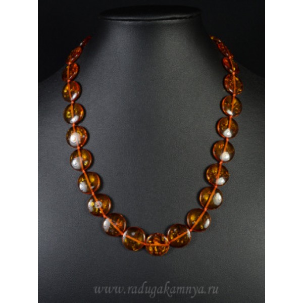 Бусы из янтаря круг 15мм св.коньячный, 47см