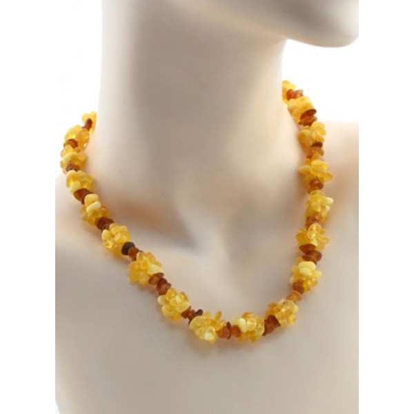 Бусы из янтаря легкая полировка "Тройные" цвет лмонно-молочный, коньячный, 47см