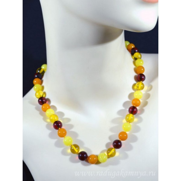 Бусы из янтаря шарик 10мм молочный, карамельный, св.коньячный, коньячный, 46см