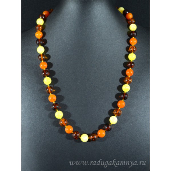 Бусы из янтаря шарик 10мм молочный, карамельный, св.коньячный, коньячный, 53см