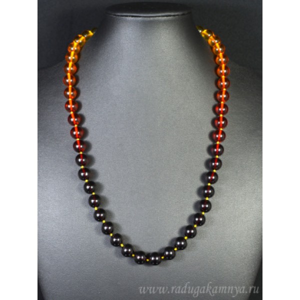 Бусы из янтаря шарик 10мм радуга лимонно-медовый-вишневый, 55см