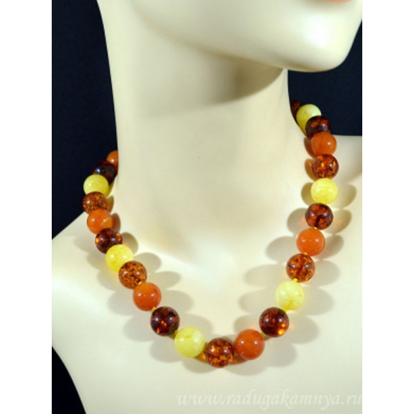 Бусы из янтаря шарик 14мм молочный, карамельный, св.коньячный, коньячный, 47см