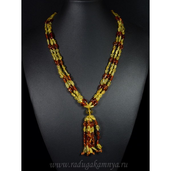 Бусы с подвеской из янтаря, 3 нити сливка лимонный, коньячный, 52см