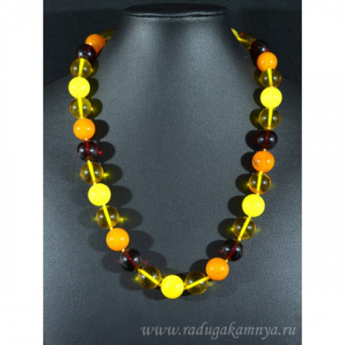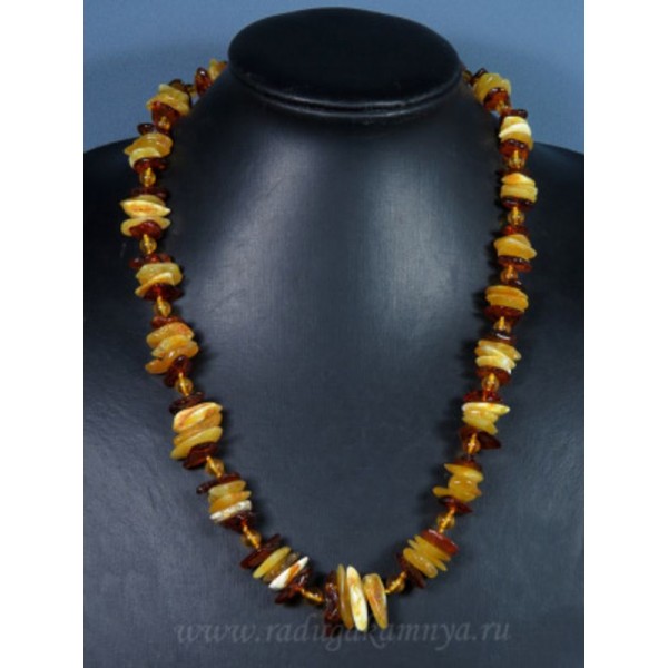 Бусы янтарные галтовка с шариком медово-молочный, коньячный, 58см