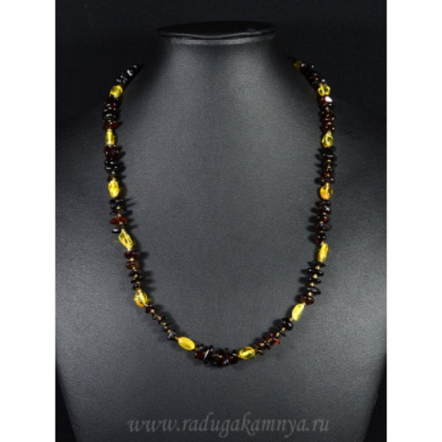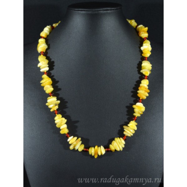 Бусы янтарные галтовка с шариком молочный, вишня, 53см