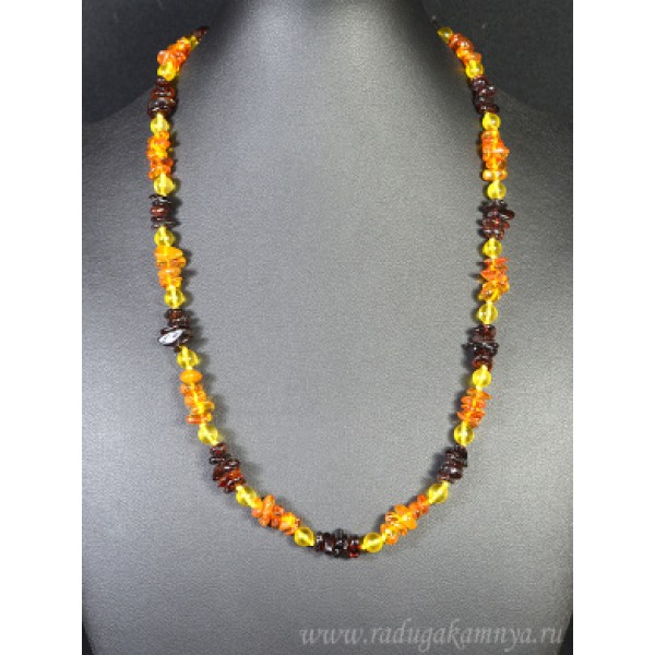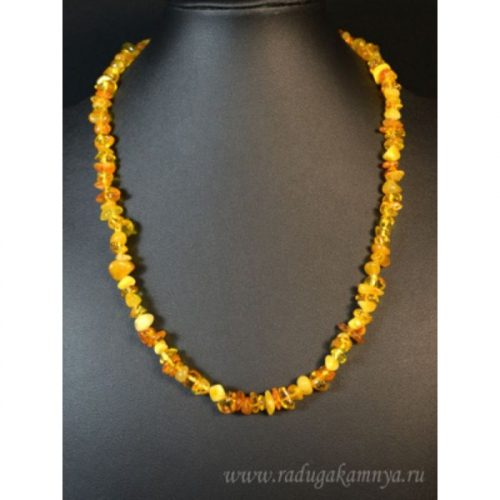 Бусы янтарные крошка с шариком св.коньячный, коньячный, лимонный, 55см