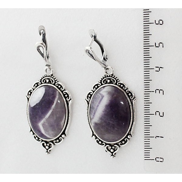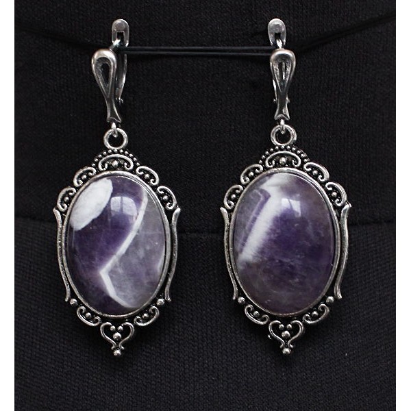 Cерьги из аметиста, овал 25х18мм, оправа "медальон", швензы посеребрение