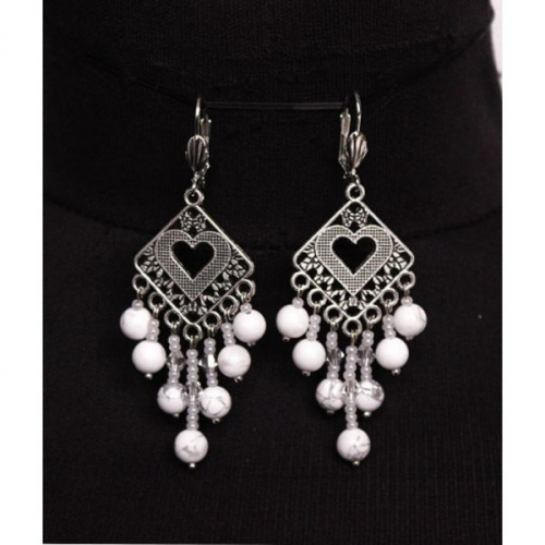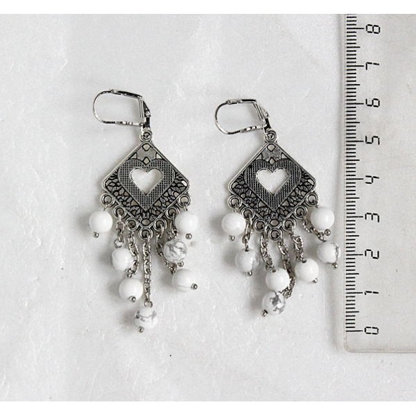 Cерьги из каулита (нат., имитация кахолонга), шарик 6мм, коннектор "сердце в ромбе" + цепочка