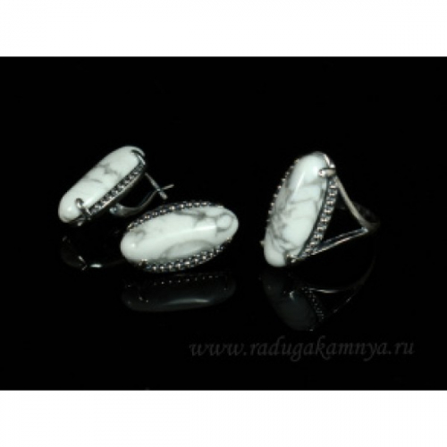 Cерьги из каулита (нат., имитация кахолонга), шарик 6мм, коннектор "сердце в ромбе" + хрусталь