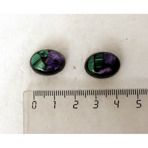 Чароит, малахит, кабошон-мозаика овал 18х13мм, черный фон