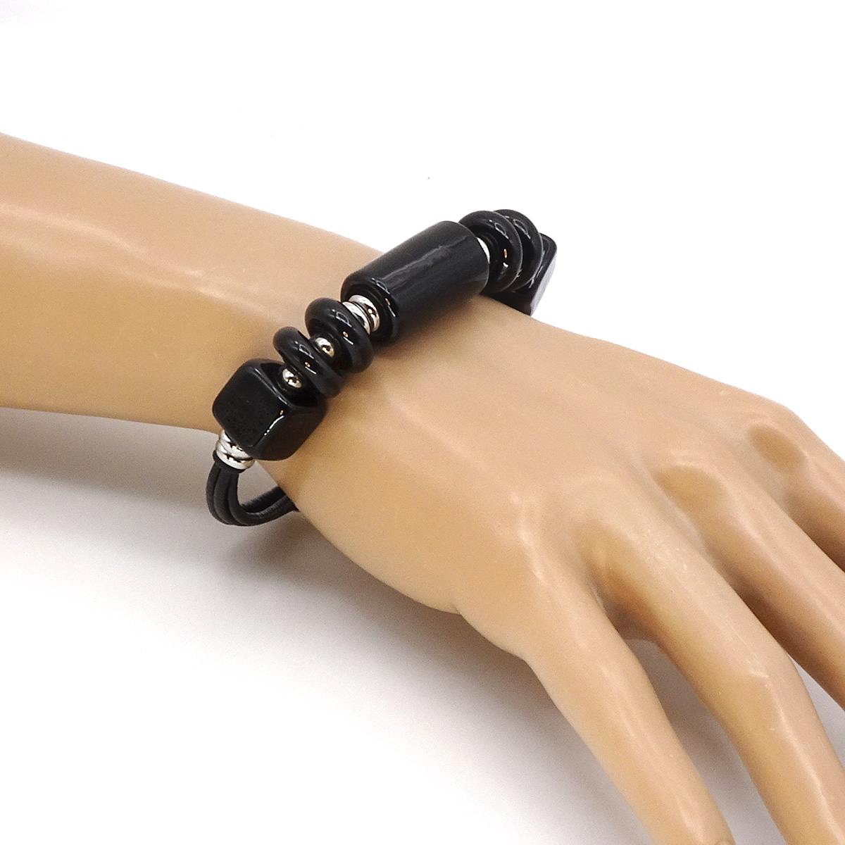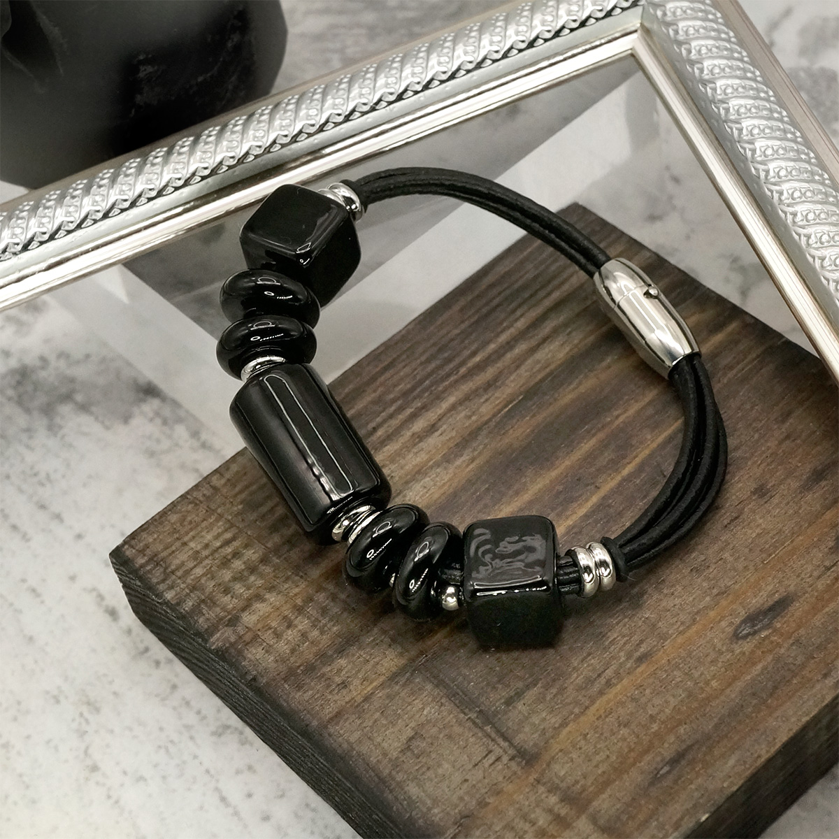 Кольцо изготовлено из муранского стекла и гипоаллергенной ювелирной стали, что очень важно для людей с чувствительной кожей. Металл не темнеет и не подвергается воздействиям окружающей среды, надолго обеспечивая красивый внешний вид изделия.  Ширина браслета 1,5 см. Размер кубышки 2,2*1,2 см, кубов 1,2*1,2 см, рандели 1,4*0,5 см. Вес - 32 гр.
