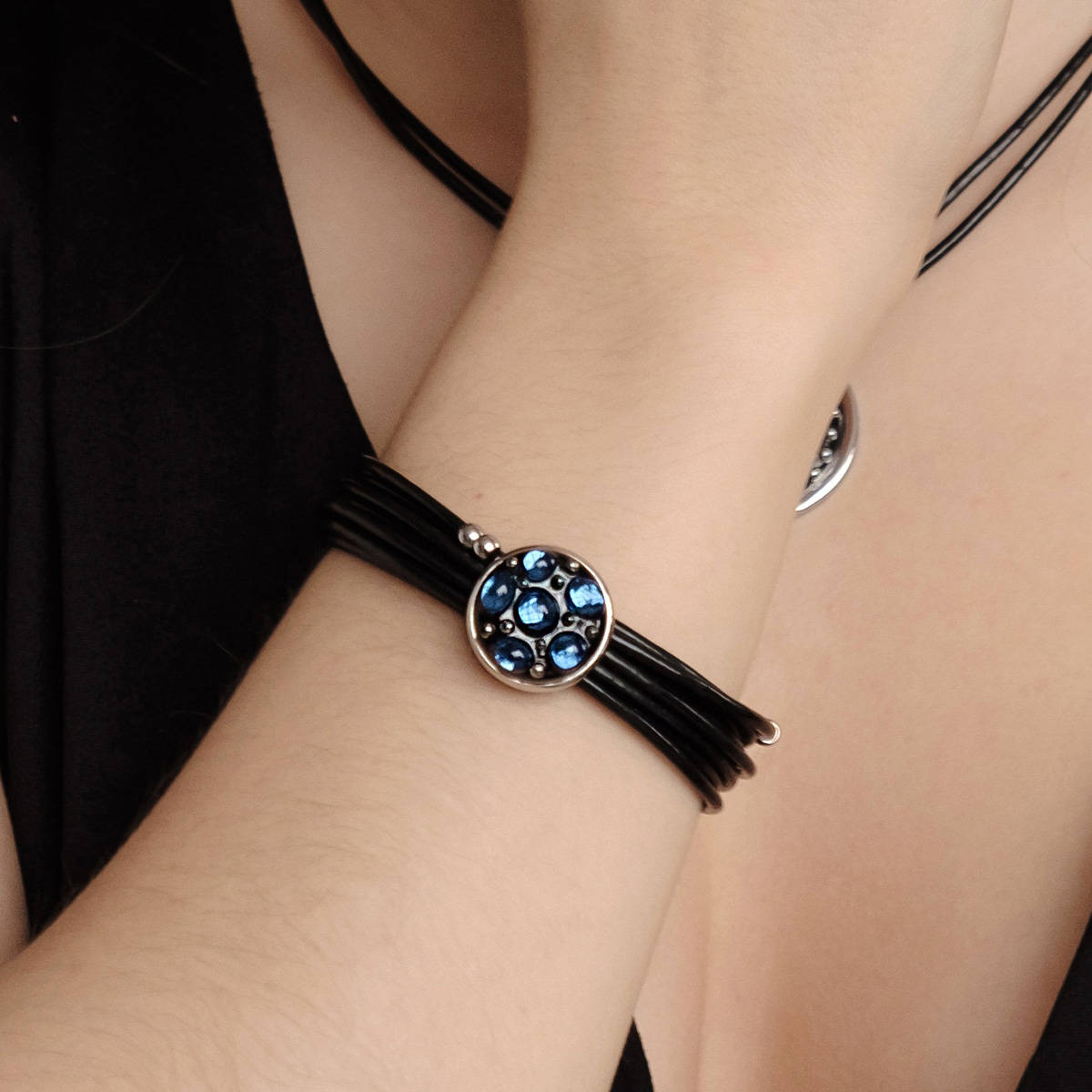 Браслет изготовлен из муранского стекла, натуральной кожи и гипоаллергенной ювелирной стали, что очень важно для людей с чувствительной кожей. Металл не темнеет и не подвергается воздействиям окружающей среды, надолго обеспечивая красивый внешний вид изделия. Крепкий магнитный замок с двойной защитой надежно фиксируется на запястье. Ширина браслета - 1,5 см. Диаметр стеклянного элемента - 2 см. Вес - 22 гр.