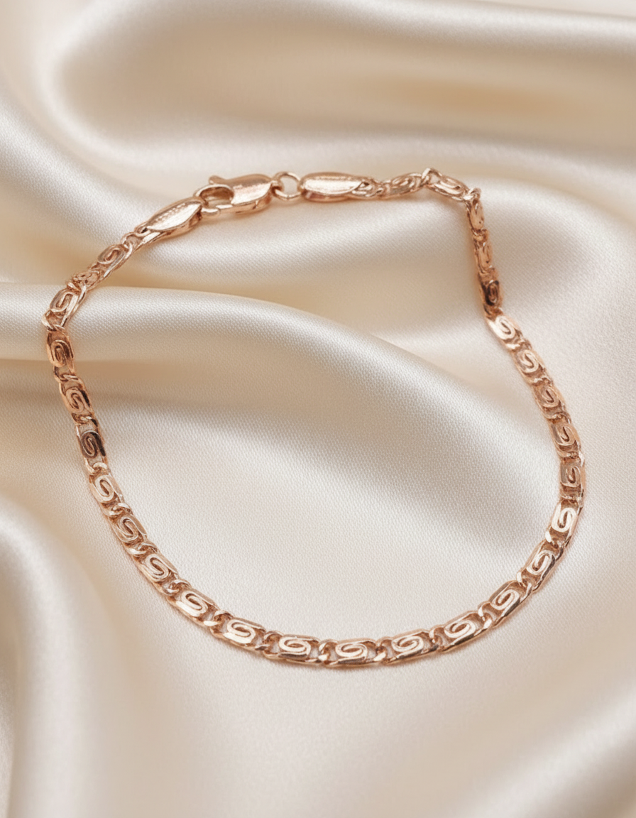 Браслет, изготовленный с помощью техники плетения "Улитка", эффектно выделяется на общем фоне украшений. Игривый завиток каждого звена нежно переливается в лучах света и создаёт неповторимый ореол вокруг своей обладательницы. С таким браслетом ваш образ будет гармоничным, стильным и полностью завершённым.