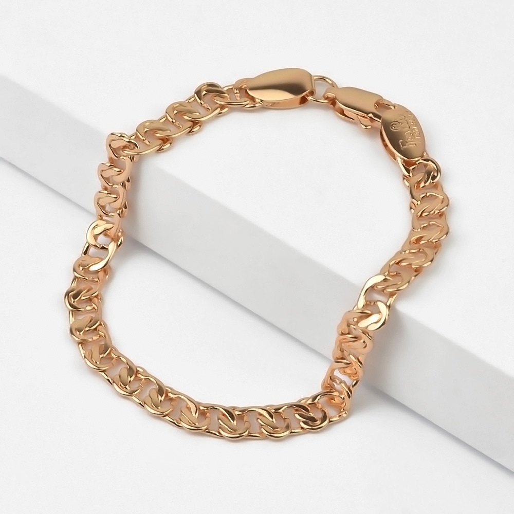 Оригинальная вязь, заложенная в основу этого браслета, притягивает к себе заинтересованные взгляды окружающих словно магнит. Хитросплетение звеньев отличается элегантностью дизайна и позволяет аксессуару дополнять множество деловых и свободных образов. Такой браслет непременно займёт достойное место в вашей коллекции украшений.
