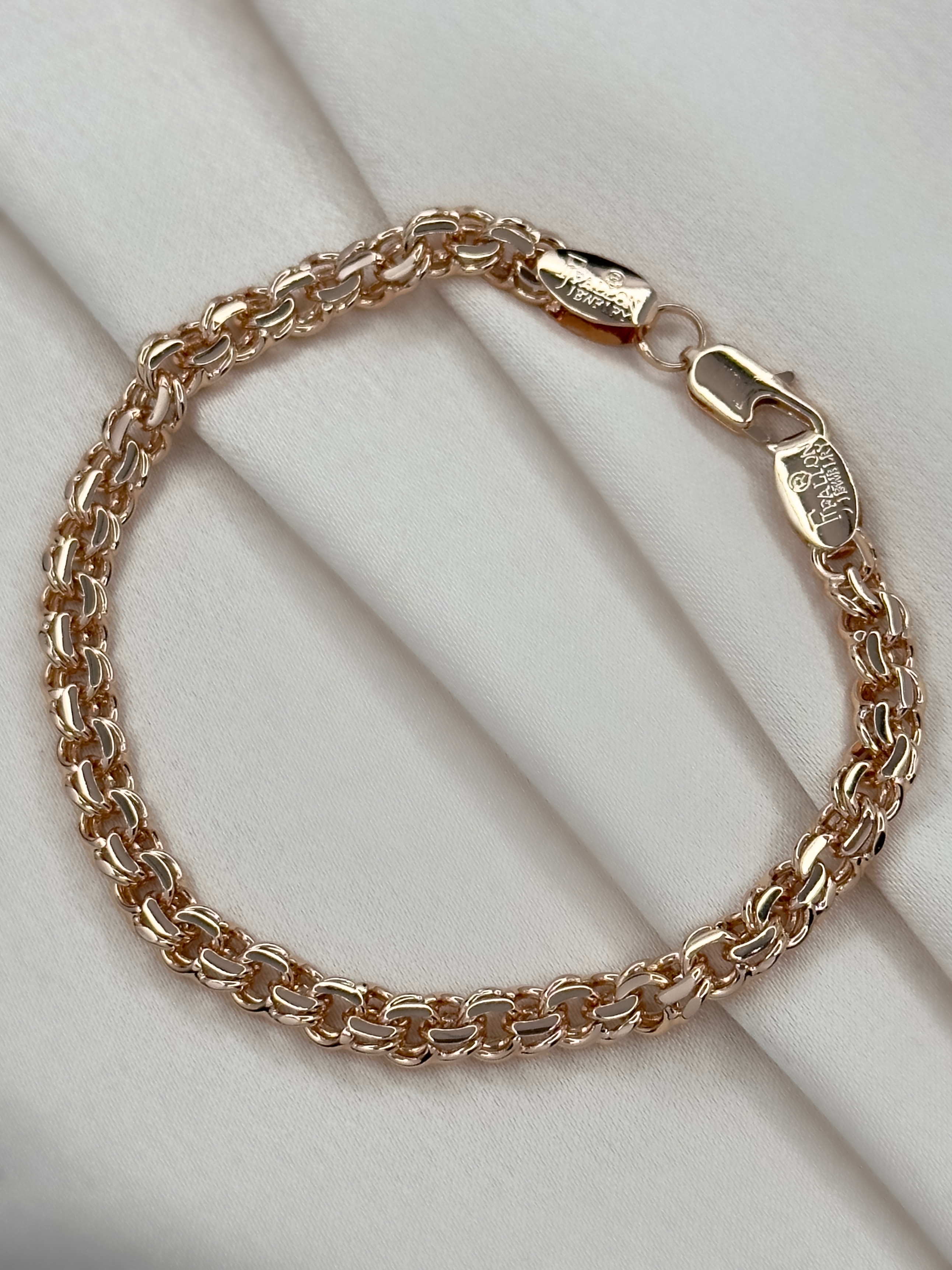 Плетение «Бисмарк ручной вязки» — это одновременно сложная и крайне прочная вязь, обеспечивающая надежное сцепление звеньев и длительный период носки изделия.