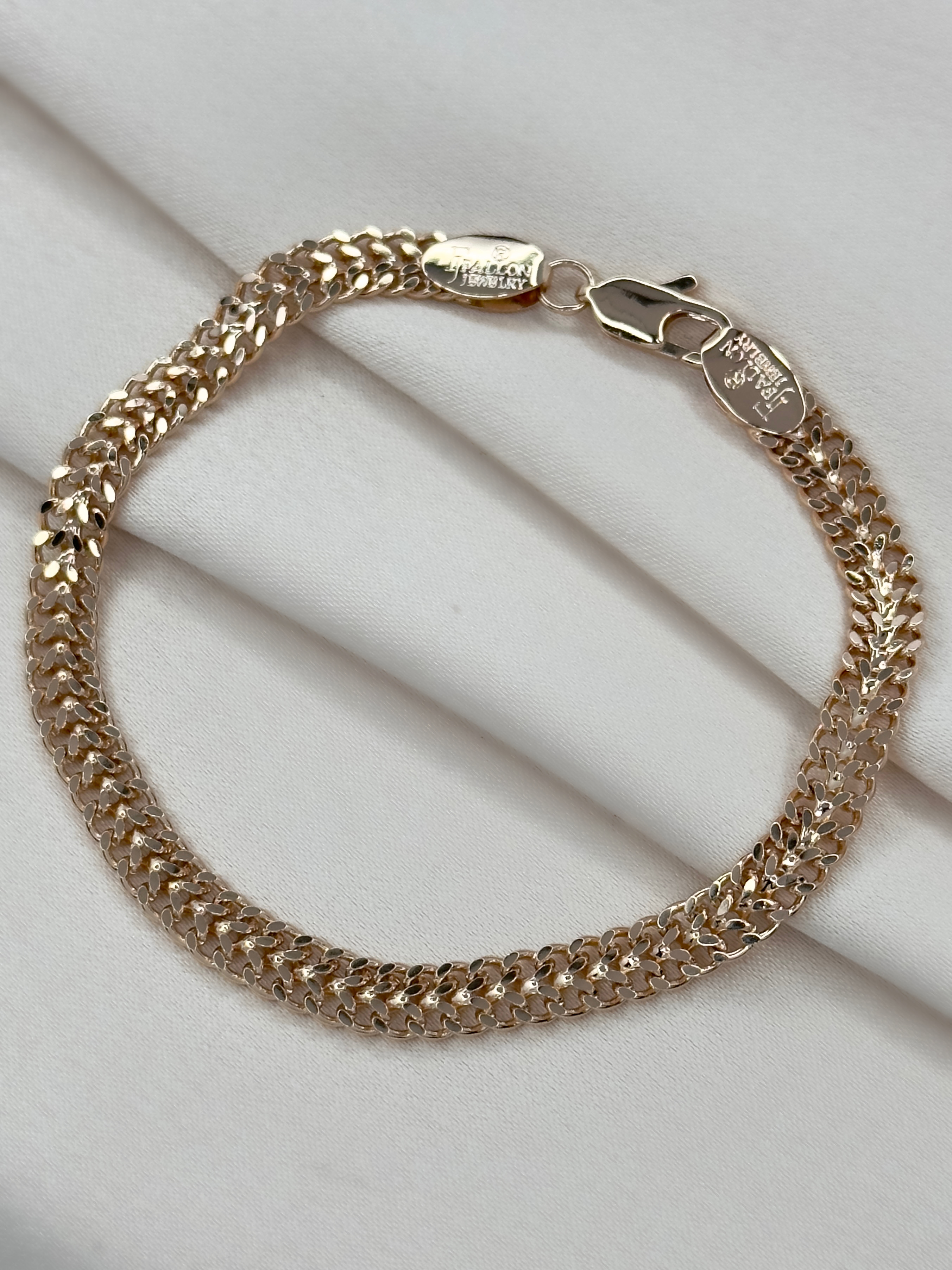 Браслет, изготовленный с помощью техники плетения "Бисмарк машинной вязки", отличается повышенной надёжностью и лаконичным дизайном. Отсутствие рельефного рисунка оценят любители стильных и статусных украшений. Такой аксессуар станет гармоничным дополнением образа, подчёркивающим отличный вкус своего владельца.