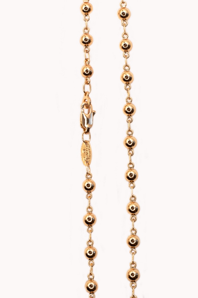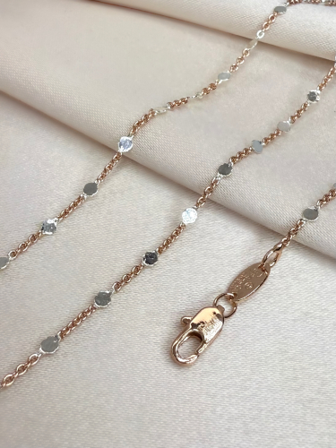 Техника плетения "Перлина" отличается внешней лёгкостью и изяществом. Полые шарики, перемежающиеся с лаконичными звеньями, немного напоминают жемчужную нить, и выглядят нежно и просто. Такая цепь станет прекрасным дополнением к деловому повседневному стилю, она самодостаточна и не требует дополнительных кулонов или подвесок.