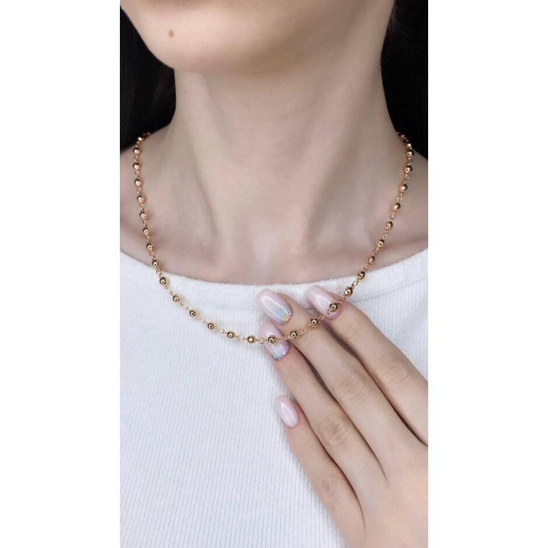 Техника плетения "Перлина" отличается внешней лёгкостью и изяществом. Полые шарики, перемежающиеся с лаконичными звеньями, немного напоминают жемчужную нить, и выглядят нежно и просто. Такая цепь станет прекрасным дополнением к деловому повседневному стилю, она самодостаточна и не требует дополнительных кулонов или подвесок.
