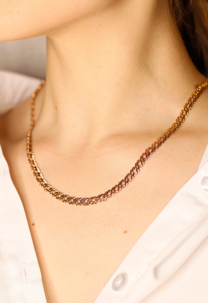 Свой оригинальный дизайн эта цепь получила благодаря необычной технике плетения "Двойной ромб". Яркий орнамент изделия и достаточно массивный внешний вид позволяет носить такое украшения безо всяких дополнительных деталй. Такая цепь прекрасно подойдёт как мужчинам, так и женщинам, и станет стильным элементом повседневного образа.