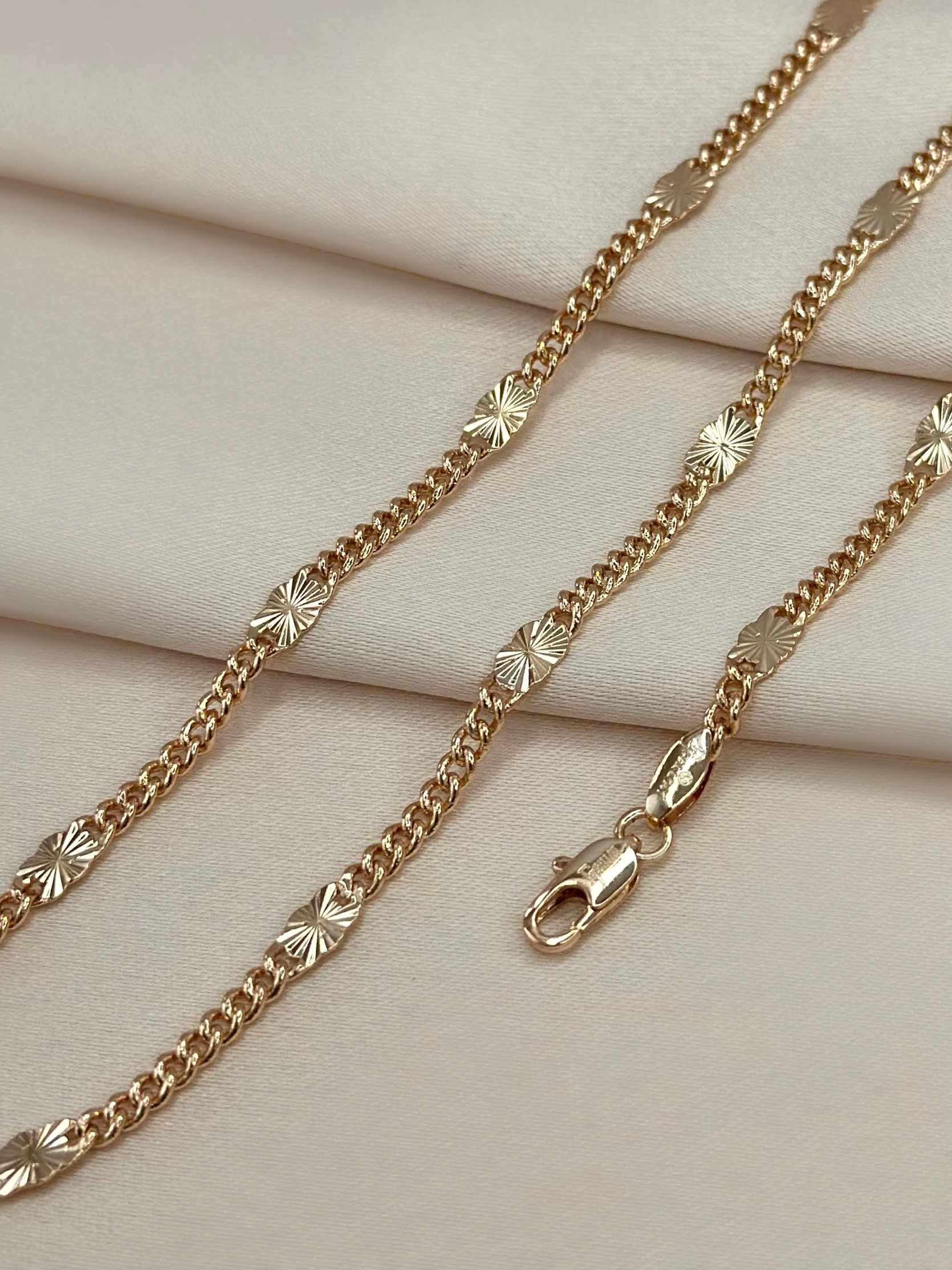 С помощью правильно подобранного украшения можно сделать ярким и стильным даже самый обыденный образ. Эту цепь характеризует сочетание лаконичности и игривости, что, безусловно, отличает её от множества других изделий. Прочное плетение, гармонично дополненное сверкающими звеньями из золотистого металла, выглядит оригинально и самодостаточно. Такая цепь станет одной из любимых в вашей коллекции.