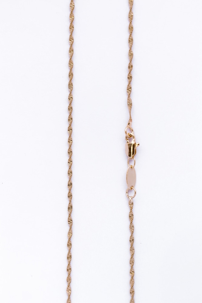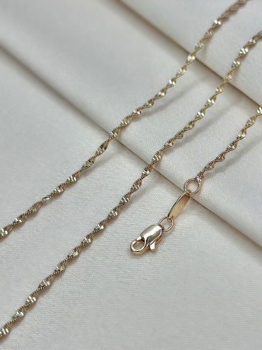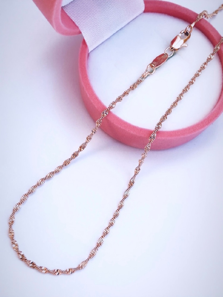 Изящное переплетение звеньев этой цепи образует утончённое, но очень прочное изделие. Такое украшение выигрышно смотрится как с декольте, так и на одежде с высоким воротником, может быть дополнено кулоном или выступать в качестве самостоятельного аксессуара. Свобода выбора в использовании этой цепи предоставляет массу вариаций её использования. В любом случае, такое украшение будет притягивать заинтересованные взгляды окружающих, и радовать свою обладательницу день ото дня.