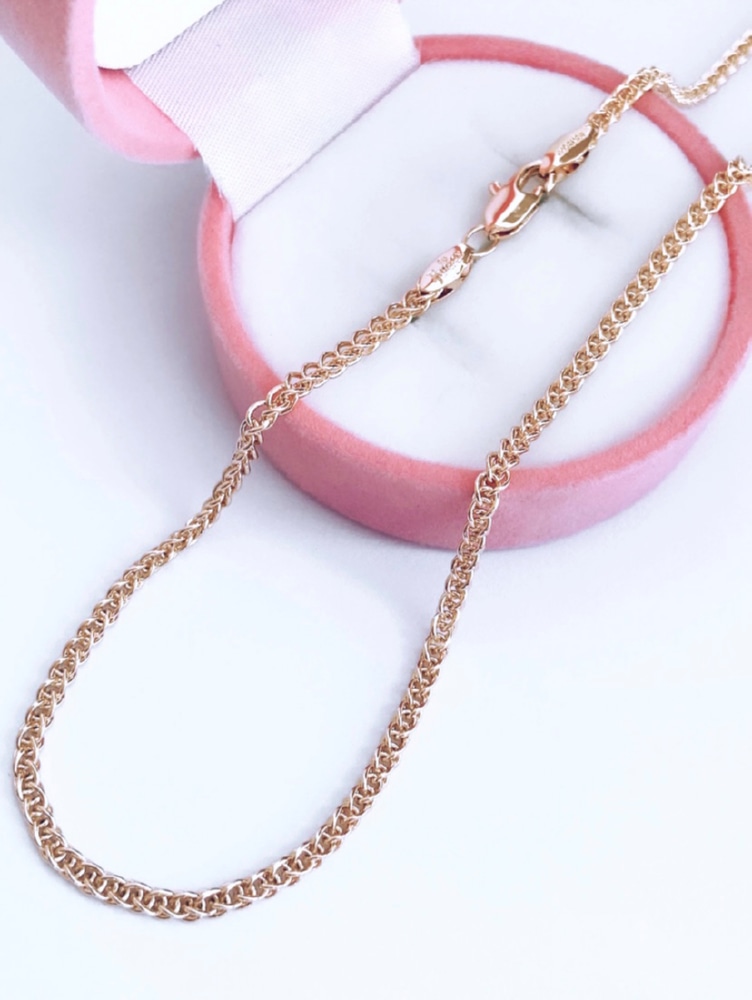 Цепь, созданная с помощью техники плетения "Колос", отличается выразительной фактурой и нежным обликом. Словно золотистый пшеничный колосок удобно расположился на шее своей обладательницы и радует её своим ярким, искристым блеском. Такая цепь прекрасно выглядит в качестве самостоятельного украшения, а также в тандеме с массивным кулоном.
