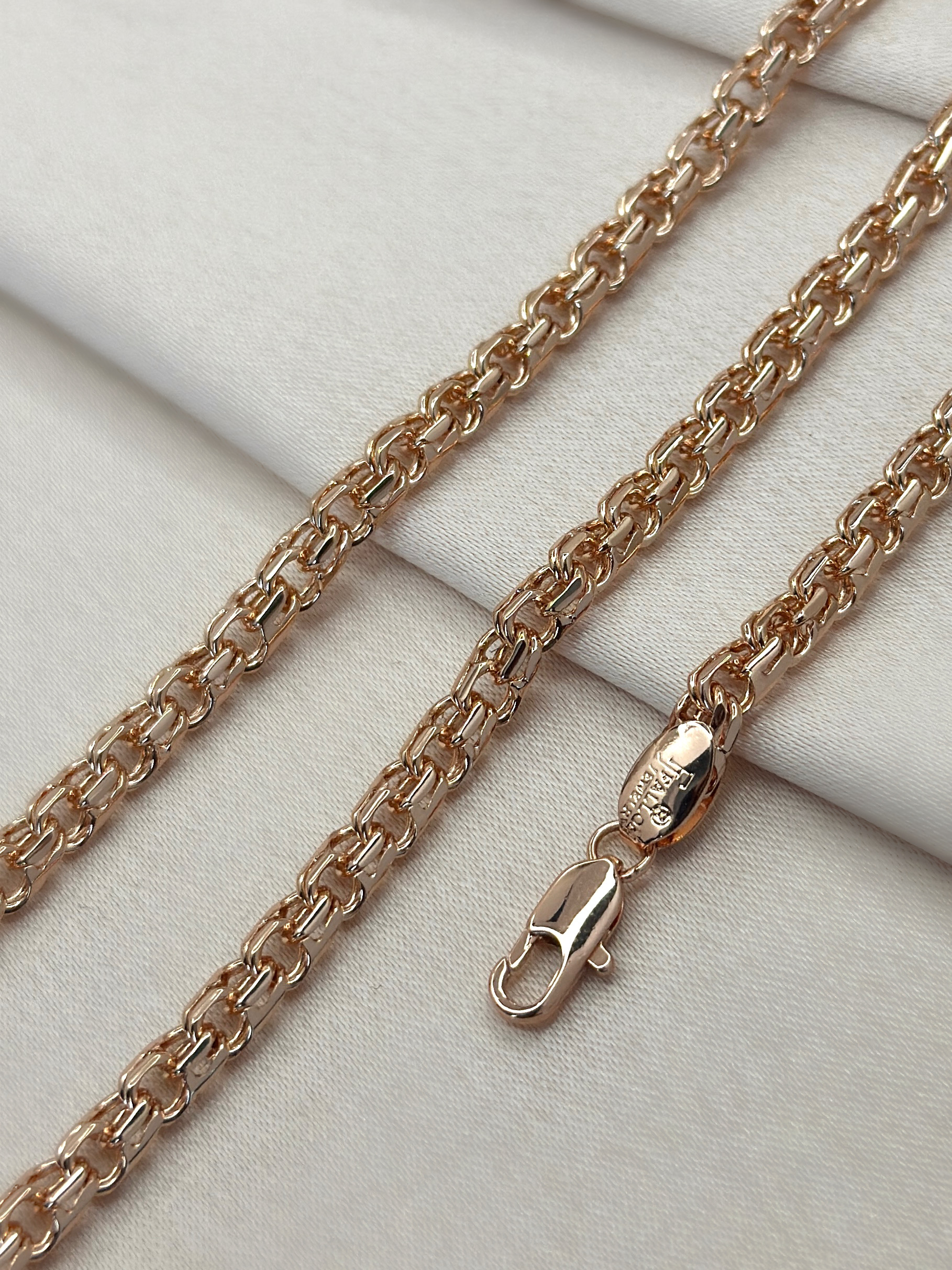 Статусное и стильное украшение призвано подчеркнуть индивидуальность своей обладательницы. Цепь, созданная при помощи техники плетения "Бисмарк ручной вязки", отличается сложностью и максимальной надёжностью исполнения. Яркий и харизматичный облик аксессуара позволяет быть самостоятельным украшением и дополнять ваш деловой или вечерний образ.