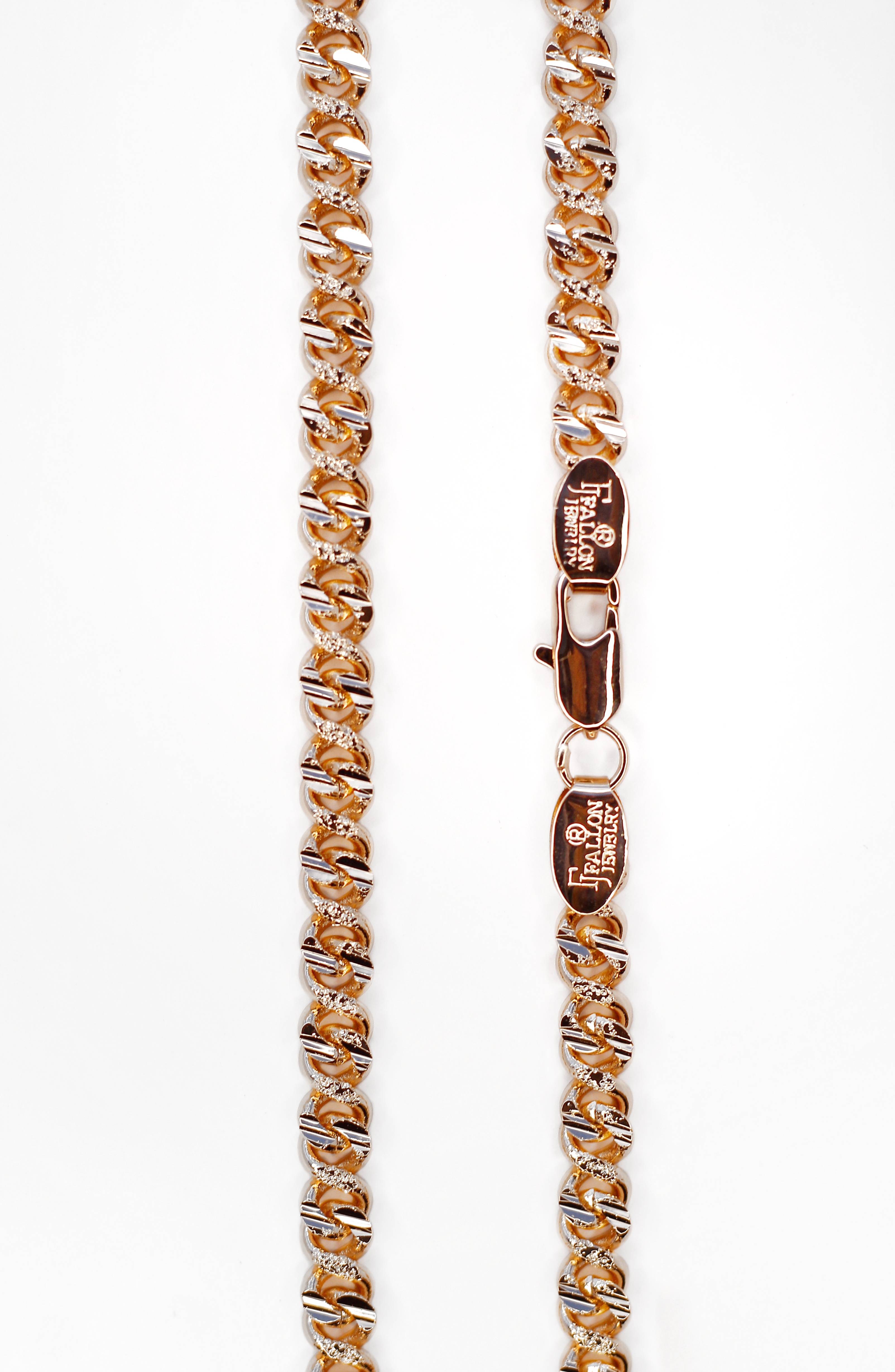 Невероятно эффектная цепь создана при помощи разновидности ажурного плетения "Восьмёрка". Объёмный и яркий облик украшения прекрасно выглядит в качестве самостоятельного аксессуара. Такая цепь способна добавить изысканности и шарма в строгий деловой образ, а также дополнить элегантный вечерний наряд.