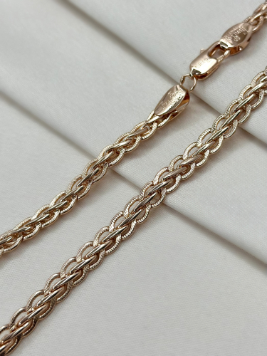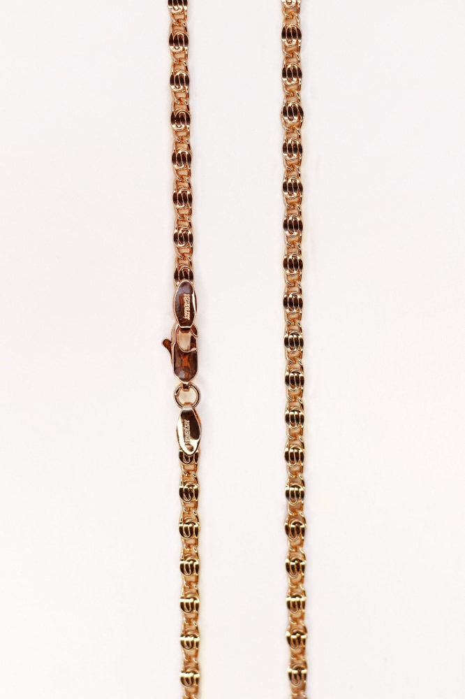 Цепь, изготовленная в технике плетения "Бисмарк машинной вязки", отличается выразительным внешним видом и повышенной прочностью. Элегантный аксессуар прекрасно подойдёт стильному мужчине, предпочитающему лаконичные и сдержанные украшения. Такая цепь отлично дополнит деловой стиль или свободный образ.