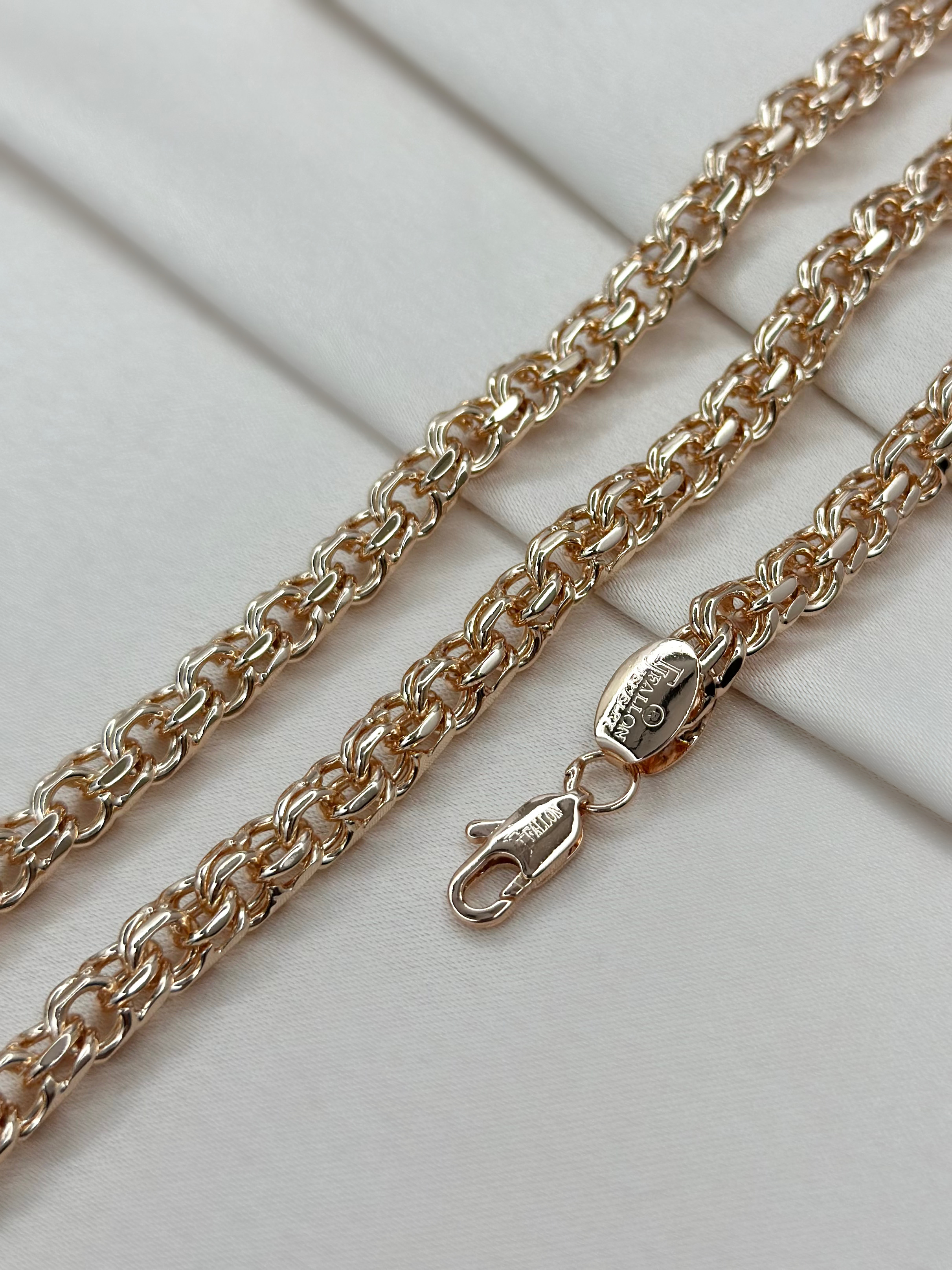 Массивная цепь призвана подчеркнуть красоту и мужественность шеи и плеч своего обладателя. Плетение "Бисмарк ручной вязки", отличающееся повышенной прочностью и ярким элегантным обликом, прекрасно справится с этой целью. Такой аксессуар не останется незамеченным окружающими и будет отличным повседневным акцентом.