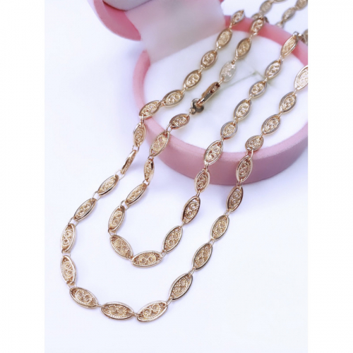 Оригинальная цепь, изготовленная с помощью разновидности панцирного плетения "Фигаро", отличается повышенной прочностью, комфортом в ношении и ярким обликом. Благодаря тому, что звенья украшения расположены в одной плоскости, аксессуар получается гладким, как сплошная металлическая лента, и может быть использован в качестве повседневной детали внешнего вида своего обладателя.