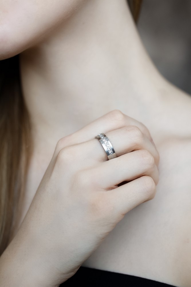 Оригинальное исполнение кольца понравится стильным девушкам, отслеживающим последние новинки ювелирной моды. Сочетание прозрачного минерала среднего размера, лаконичного орнамента и платинового строгого блеска металла делает аксессуар прекрасным дополнением множества образов. Такое кольцо непременно должно быть в ювелирном гардеробе настоящей модницы.