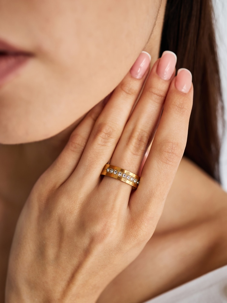 Это кольцо способно в полной мере выразить чувства своего дарителя. Стильный дизайн, лаконичные камни с нежным блеском и трогательная надпись непременно очаруют прекрасную даму вашего сердца. Такой аксессуар станет одним из любимых в ювелирной шкатулке и будет всегда напоминать о человеке, который его подарил.
