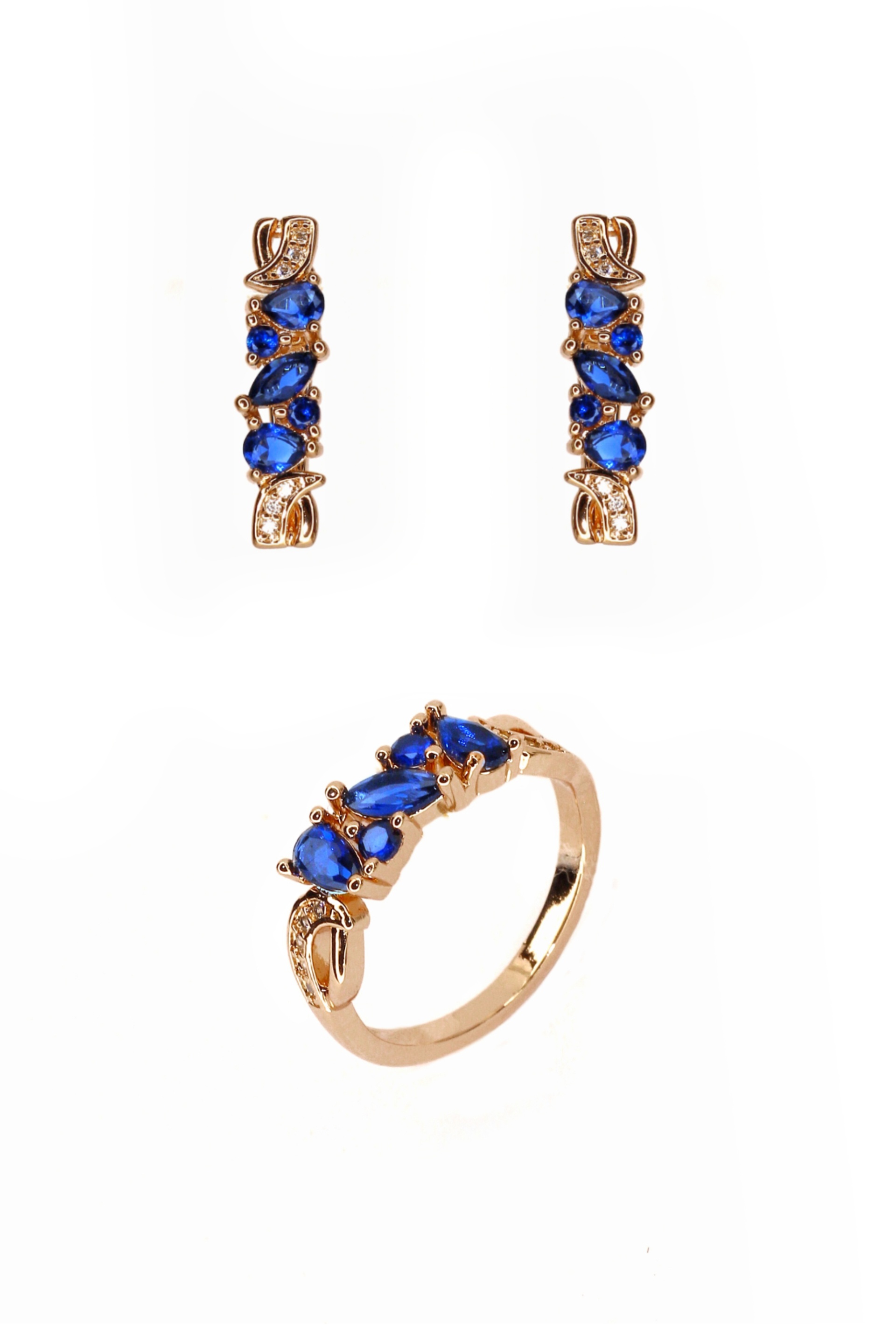 Синий сапфир – королевских кровей камень, самый прекрасный из своего семейства, символ бессмертия, духовной силы и богатства. Хорошей заменой ему станет искусственный камень циркон синего цвета. Роскошный комплект добавит в Ваш вечерний образ некую изюминку.