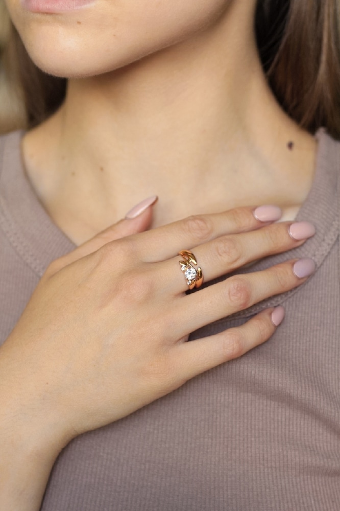 Выразительный комплект, в который входят серьги и кольцо с крупными бесцветными минералами, будет уместен во многих ситуациях. Нежные переливы и блеск прозрачных цирконов подчёркивают изящество рук и красоту лица своей обладательницы. А игривая форма изделий, делает образ нежным и утончённым. Такой комплект будет прекрасным дополнением как делового стиля, так и вечернего выхода в свет.