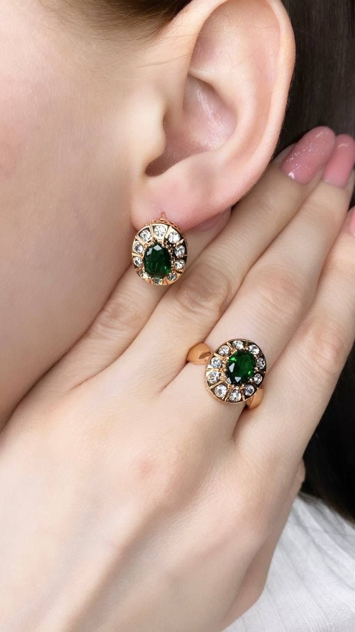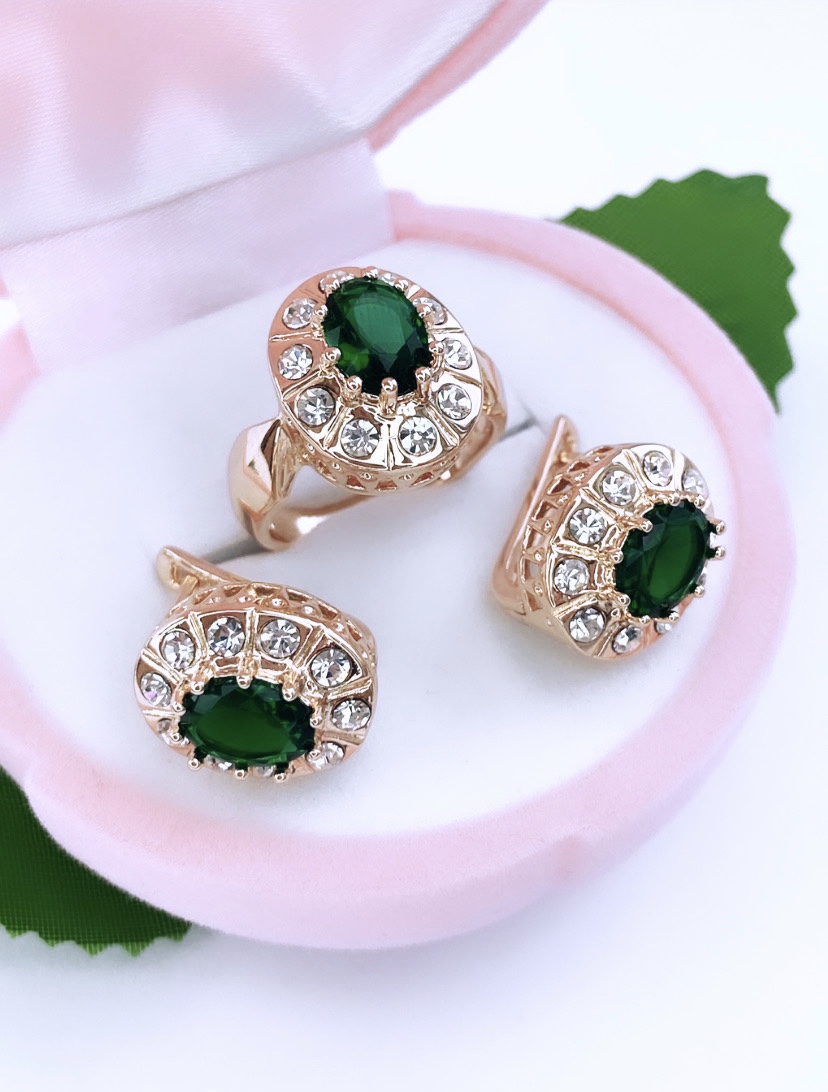 Минералы изумрудного цвета, используемые в ювелирных украшениях, притягивают к своей обладательнице удачу и дарят спокойствие. Изумительный комплект, основой которого выступают зелёные камни, дополненные небольшими сверкающими цирконами, придаст своей владелице шарм и непередаваемое обаяние. Притягательный облик аксессуаров оттенит даже самый строгий деловой костюм, или станет гармоничным дополнением вечернего образа.