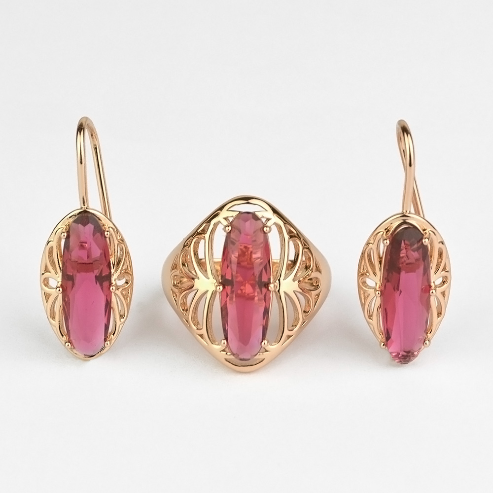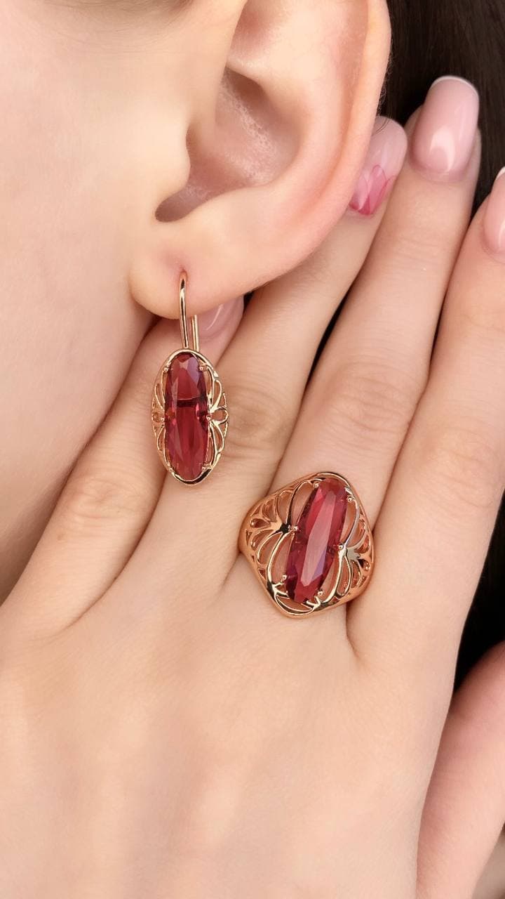 Алый цвет в украшениях символизирует яркий темперамент и пылкую страсть. Комплект, основной нотой которого выступает красный циркон, прекрасно подойдёт харизматичной и смелой представительнице прекрасного пола. Он способен стать основным элементом повседневного образа, или гармонично дополнить вечернее платье. Такой комплект непременно привлечёт к вам внимание и комплименты окружающих.