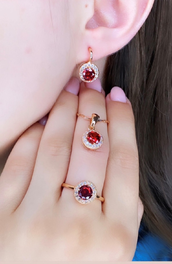 Тип комплекта: серьги + кольцо + кулон