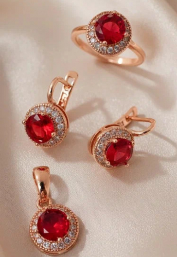 Тип комплекта: серьги + кольцо + кулон