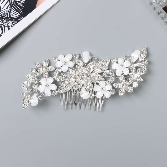 Гребень для волос «Саманта», цветочный, 14.5×6.5 см, серебро