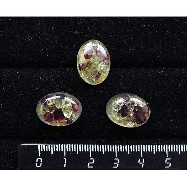 Хризолит и гранат, кабошон-мозаика овал 18х13мм