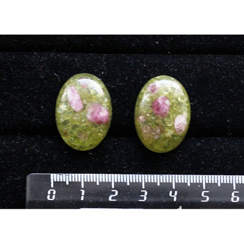 Хризолит и турмалин, кабошон-мозаика овал 25х18мм