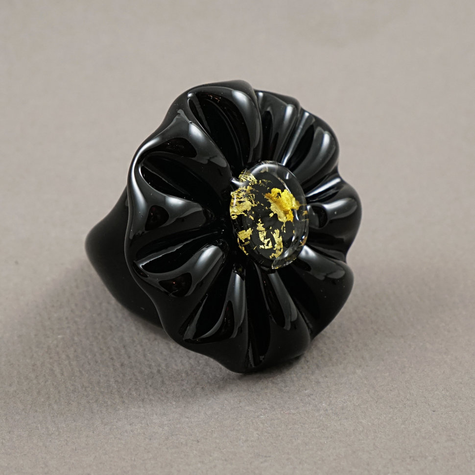 Кольцо Glass flower черно-золотое