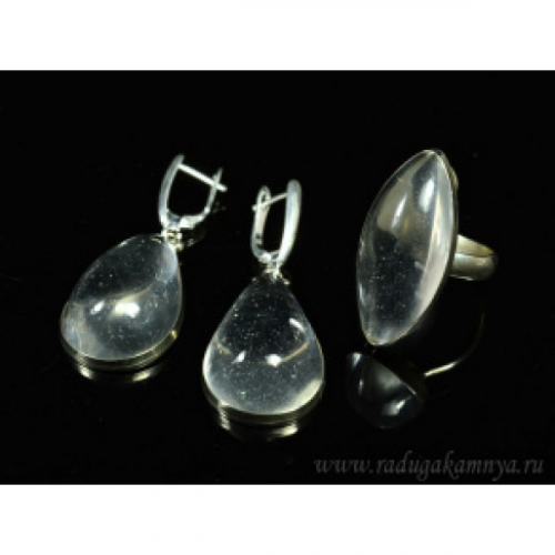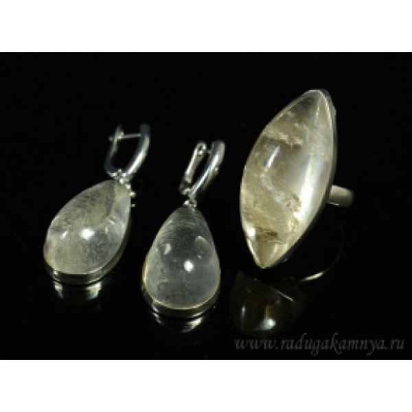 Кольцо и серьги горный хрусталь